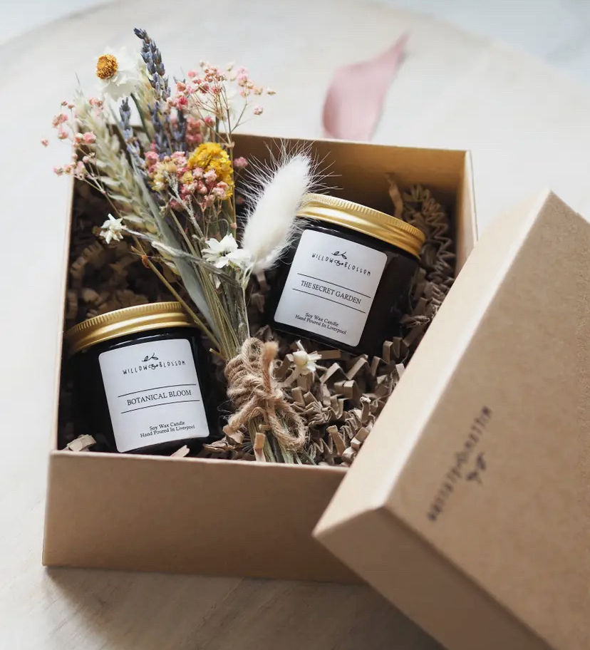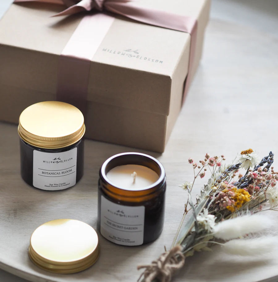 The perfect candle duo featuring the beautiful scents of ‘The Secret Garden’ & ‘Botanical Bloom’ mini candles and a hand tied posy of dried flowers all boxed up and tied with a luxury ribbon ...